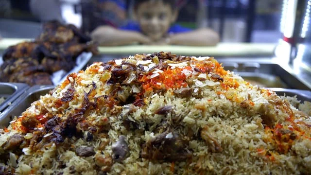 Two months later, the dish had taken on the contribution of Hillary Sterling, who worked with Einat to replace the onions with slices of potato, substitute saffron for cumin, then top the rice with a whole roasted poussin--glazed with a reduction made from pomegranate juice, walnuts, and Persian lime.